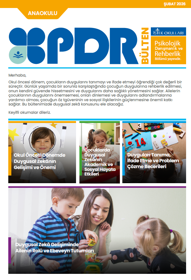 İSTEK Okulları Psikolojik Danışmanlık ve Rehberlik Bölümü tarafından hazırlanan PDR Bültenine aşağıdaki sayfanın üzerine tıklayarak ulaşabilirsiniz.